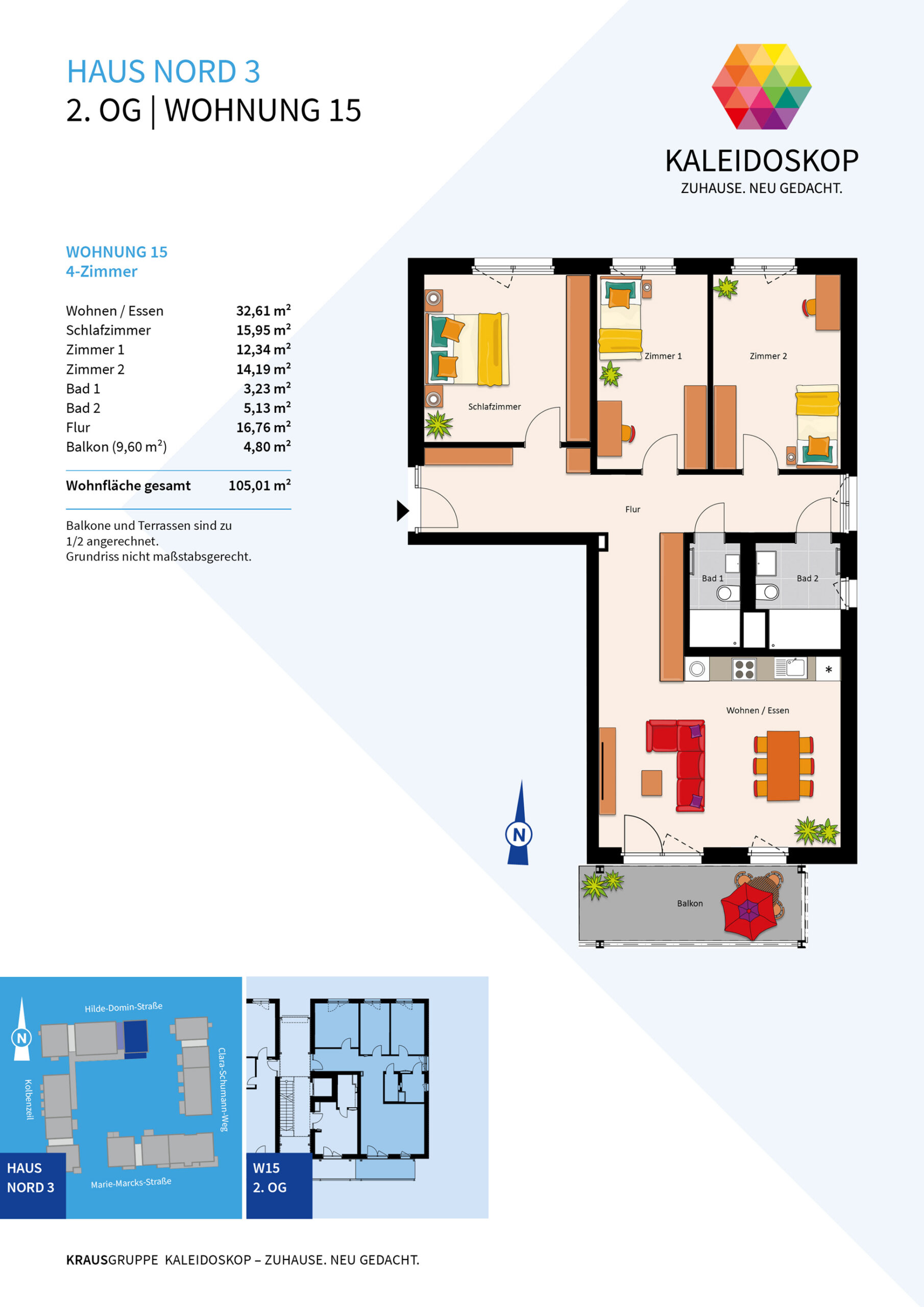 Neubauprojekt KALEIDOSKOP – ZUHAUSE. NEU GEDACHT. Ein Quartier, lebendig-bunt wie der Blick ins Kaleidoskop. Die KRAUSGRUPPE errichtet hier bis Herbst 2026 insgesamt 83 Wohneinheiten verteilt auf zwölf Gebäude. Der vielfältige Wohnungsmix bietet Raum für jeden Bedarf: von einem 2-Zimmer-Appartement über lichtdurchflutete Penthouse-Wohnungen oder ein attraktives Stadthaus – bis hin zum Atelierwohnen, das Möglichkeiten für eine gemischte Nutzung zum Wohnen und Arbeiten bietet.
