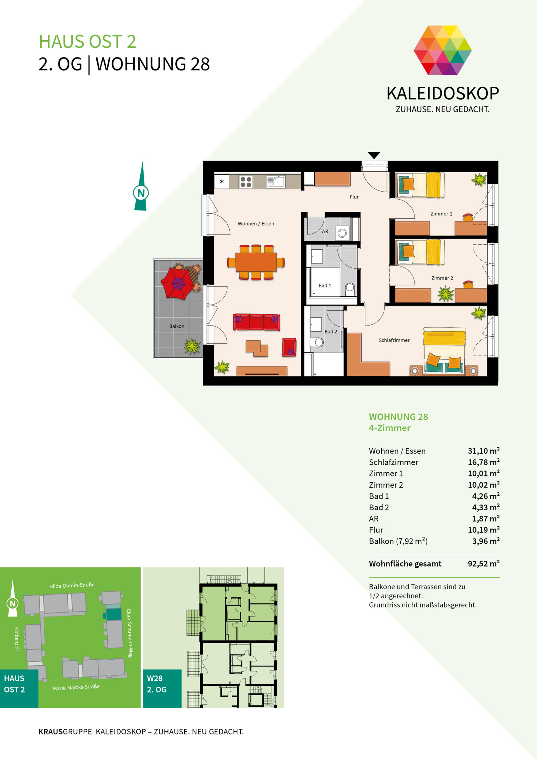 Neubauprojekt KALEIDOSKOP – ZUHAUSE. NEU GEDACHT. Ein Quartier, lebendig-bunt wie der Blick ins Kaleidoskop. Die KRAUSGRUPPE errichtet hier bis Herbst 2026 insgesamt 83 Wohneinheiten verteilt auf zwölf Gebäude. Der vielfältige Wohnungsmix bietet Raum für jeden Bedarf: von einem 2-Zimmer-Appartement über lichtdurchflutete Penthouse-Wohnungen oder ein attraktives Stadthaus – bis hin zum Atelierwohnen, das Möglichkeiten für eine gemischte Nutzung zum Wohnen und Arbeiten bietet.
