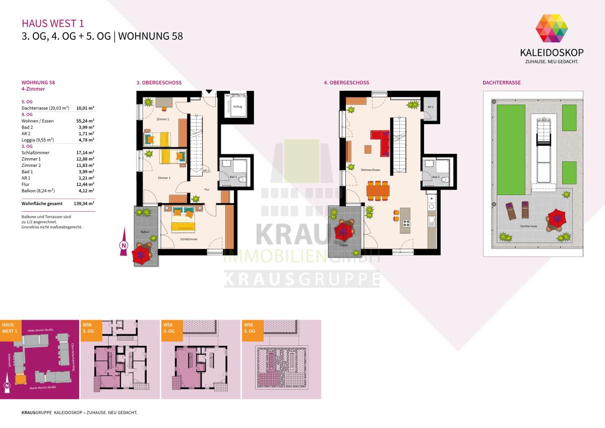 Neubauprojekt KALEIDOSKOP – ZUHAUSE. NEU GEDACHT. Ein Quartier, lebendig-bunt wie der Blick ins Kaleidoskop. Die KRAUSGRUPPE errichtet hier bis Herbst 2026 insgesamt 83 Wohneinheiten verteilt auf zwölf Gebäude. Der vielfältige Wohnungsmix bietet Raum für jeden Bedarf: von einem 2-Zimmer-Appartement über lichtdurchflutete Penthouse-Wohnungen oder ein attraktives Stadthaus – bis hin zum Atelierwohnen, das Möglichkeiten für eine gemischte Nutzung zum Wohnen und Arbeiten bietet.