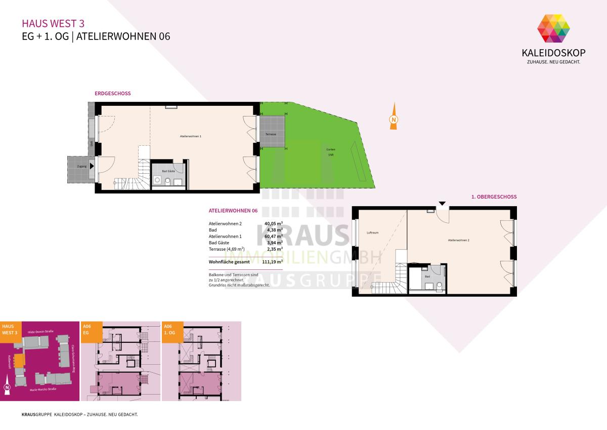 Haus W3 ist mit einer überhöhten Sockelzone zur Kolbenzeil hin angelegt – und beherbergt Atelierwohnungen mit Galerie im individuellen Charakter. Erker und von der Straße zum Innenhof durchbindende Atelierwohnungen im Erdgeschoss ermöglichen individuelle Lösungen ganz nach Ihrem Bedarf. Hier lassen sich die verschiedensten Lebens- und Arbeitskonzepte umsetzen. Ob als reine Gewerbeeinheit, als Büro mit Wohngalerie oder als reine Maisonette-Wohnung. Die Grundrisse in den Obergeschossen bieten ebenfalls Raum für vielseitige Nutzungen – insbesondere die Erker machen attraktive Raumerweiterungen möglich.