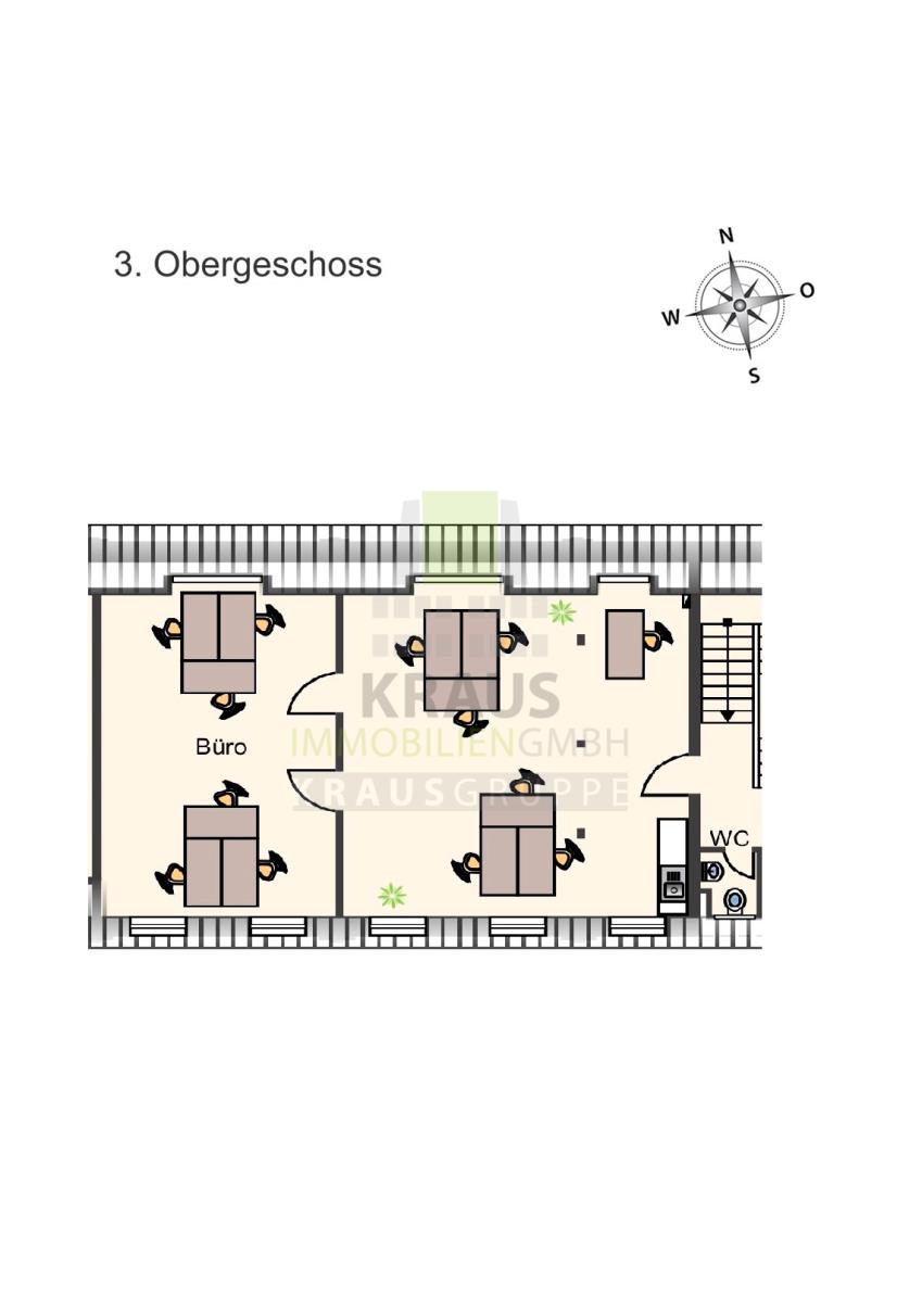 Die zu vermietende Einheit liegt im 3. Obergeschoss/ Dachgeschoss des charmanten Kontor-Gebäudes ohne Aufzug. Sie erstreckt sich auf ca. 93 m² Mietfläche, welche derzeit in zwei Räume aufgeteilt ist.