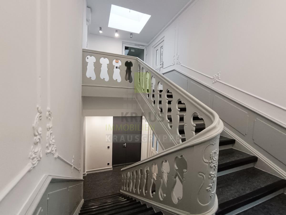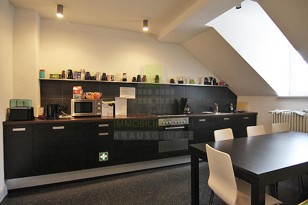 Die zu vermietende Bürofläche mit Dachschrägen liegt in der 3. Etage, ist klimatisiert und verfügt über ca. 195,43 m² Mietfläche . Es steht ein Personalraum mit einer vollwertigen Einbauküche: Spüle, Spülmaschine, Elektroherd, Kühlschrank und div. Schränke zur Verfügung. Weitere 5 Büroräume und ein charmantes Großraumbüro, welches durch seine Holzbalken eine besondere Atmosphäre schafft sowie getrennte Damen- und Herren WC´s vervollständigen den Grundriss.
