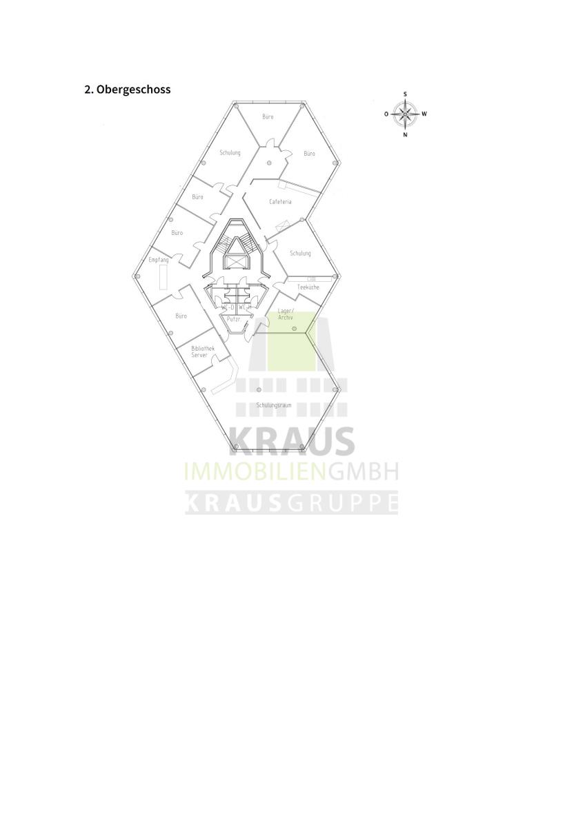 Die mit Nadelfilz ausgestatteten Räume können je nach Bedarf als Seminarräume, Besprechungszimmer oder in Büros für mehrere Mitarbeiter aufgeteilt werden. Eine Veränderung der Räume ist nach Absprache möglich. Zur Ausstattung gehören auch die Deckenbeleuchtung und CAT-Verkabelung. Selbstverständlich steht ein Personenaufzug ab der Parkfläche zur Verfügung.