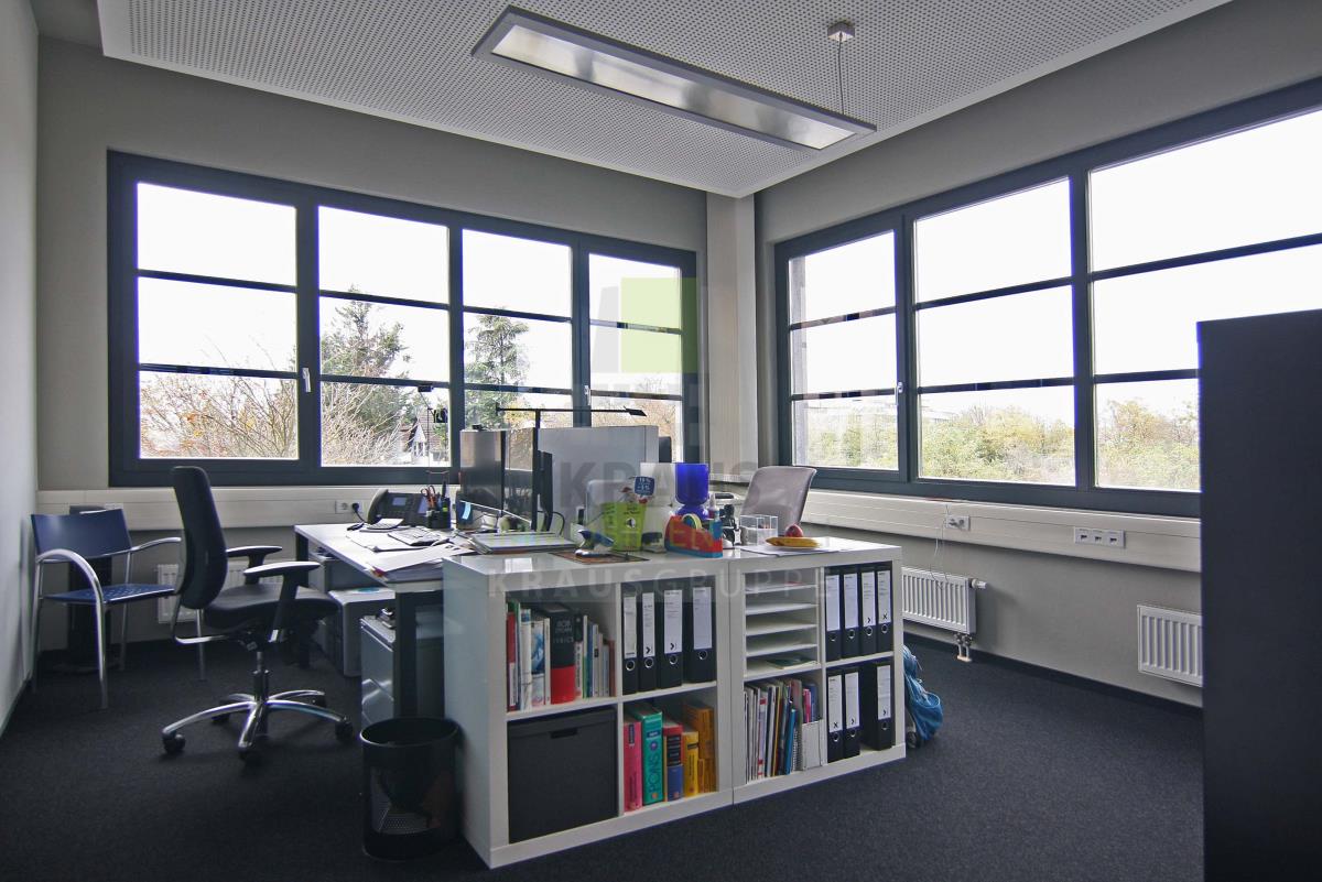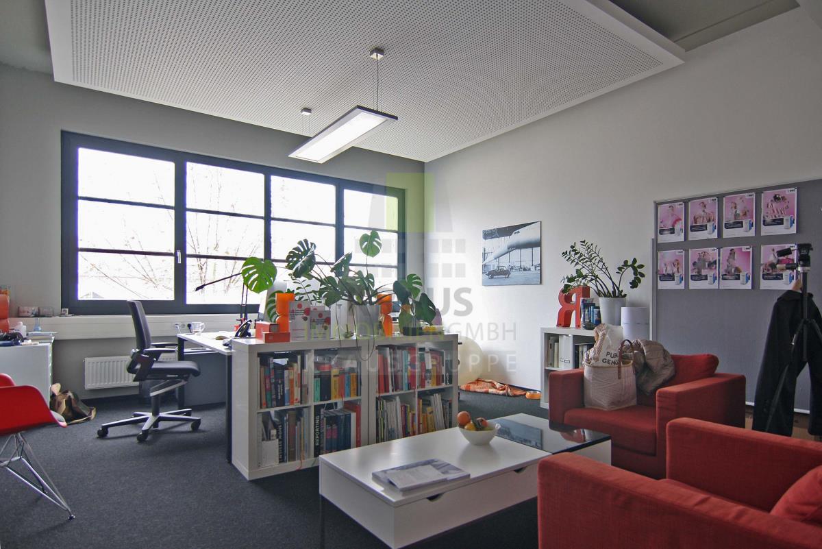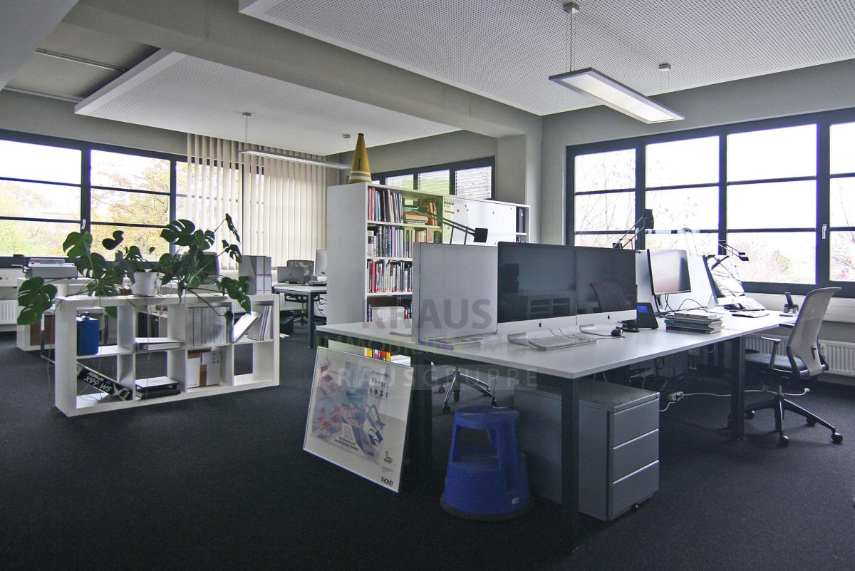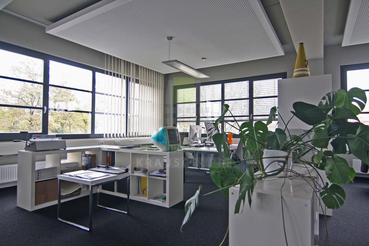Der Boden ist mit einem robusten Nadelfilzteppich ausgestattet. Die Büroräume verfügen über Schallschutzdecken und Beleuchtung.