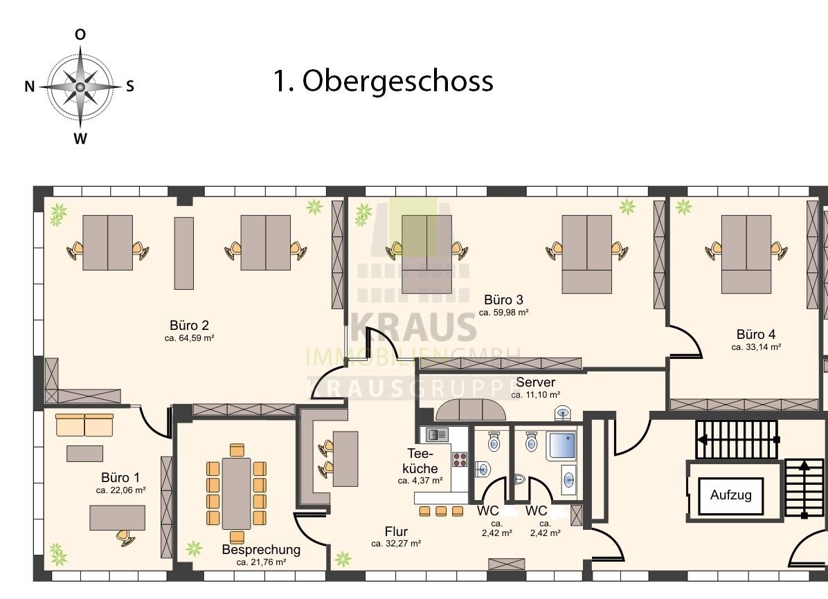 Die zu vermietende Gewerbeeinheit verfügt über 262 m² Mietfläche und liegt im 1.Obergeschoss. Die Bürofläche ist flexibel nutzbar und durch einen Aufzug barrierefrei zugänglich für Mitarbeiter und Besucher.