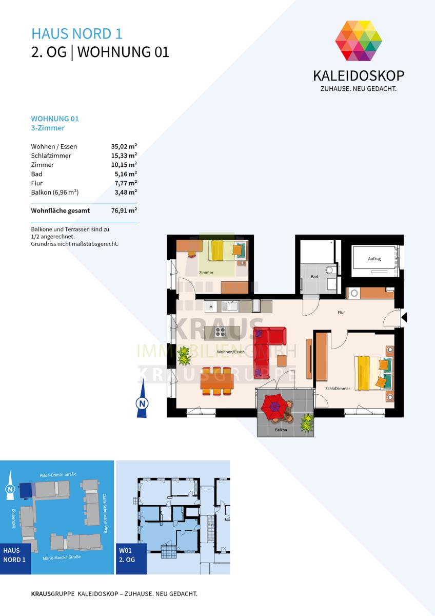 Neubauprojekt KALEIDOSKOP – ZUHAUSE. NEU GEDACHT. Ein Quartier, lebendig-bunt wie der Blick ins Kaleidoskop. Die KRAUSGRUPPE errichtet hier bis Herbst 2026 insgesamt 83 Wohneinheiten verteilt auf zwölf Gebäude. Der vielfältige Wohnungsmix bietet Raum für jeden Bedarf: von einem 2-Zimmer-Appartement über lichtdurchflutete Penthouse-Wohnungen oder ein attraktives Stadthaus – bis hin zum Atelierwohnen, das Möglichkeiten für eine gemischte Nutzung zum Wohnen und Arbeiten bietet.
