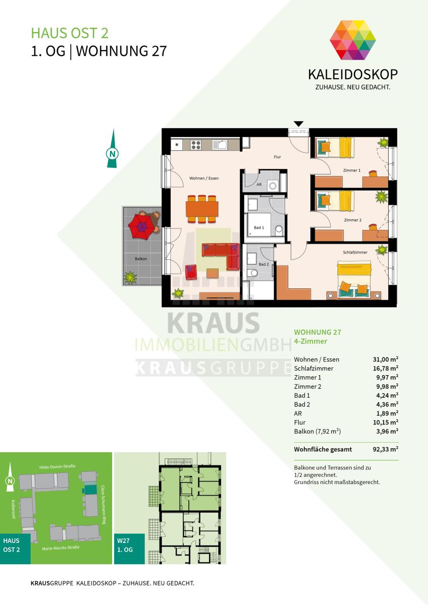 Neubauprojekt KALEIDOSKOP – ZUHAUSE. NEU GEDACHT. Ein Quartier, lebendig-bunt wie der Blick ins Kaleidoskop. Die KRAUSGRUPPE errichtet hier bis Herbst 2026 insgesamt 83 Wohneinheiten verteilt auf zwölf Gebäude. Der vielfältige Wohnungsmix bietet Raum für jeden Bedarf: von einem 2-Zimmer-Appartement über lichtdurchflutete Penthouse-Wohnungen oder ein attraktives Stadthaus – bis hin zum Atelierwohnen, das Möglichkeiten für eine gemischte Nutzung zum Wohnen und Arbeiten bietet.